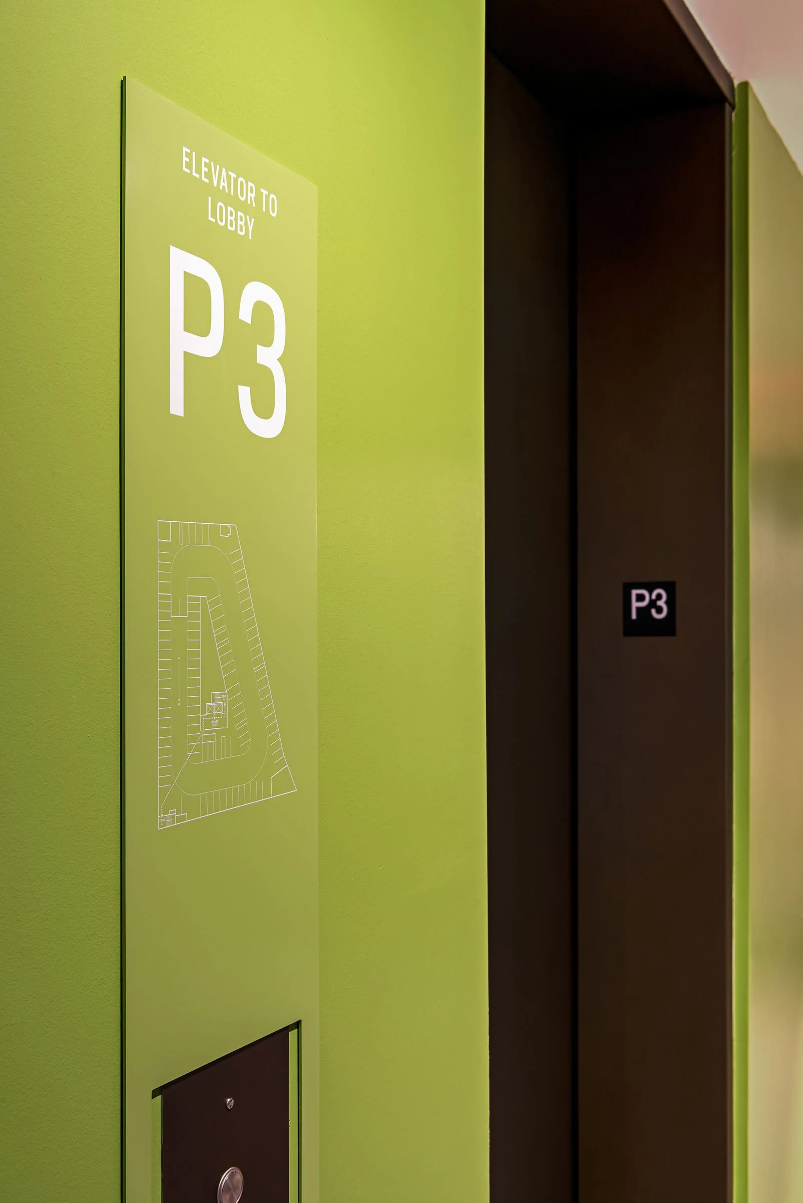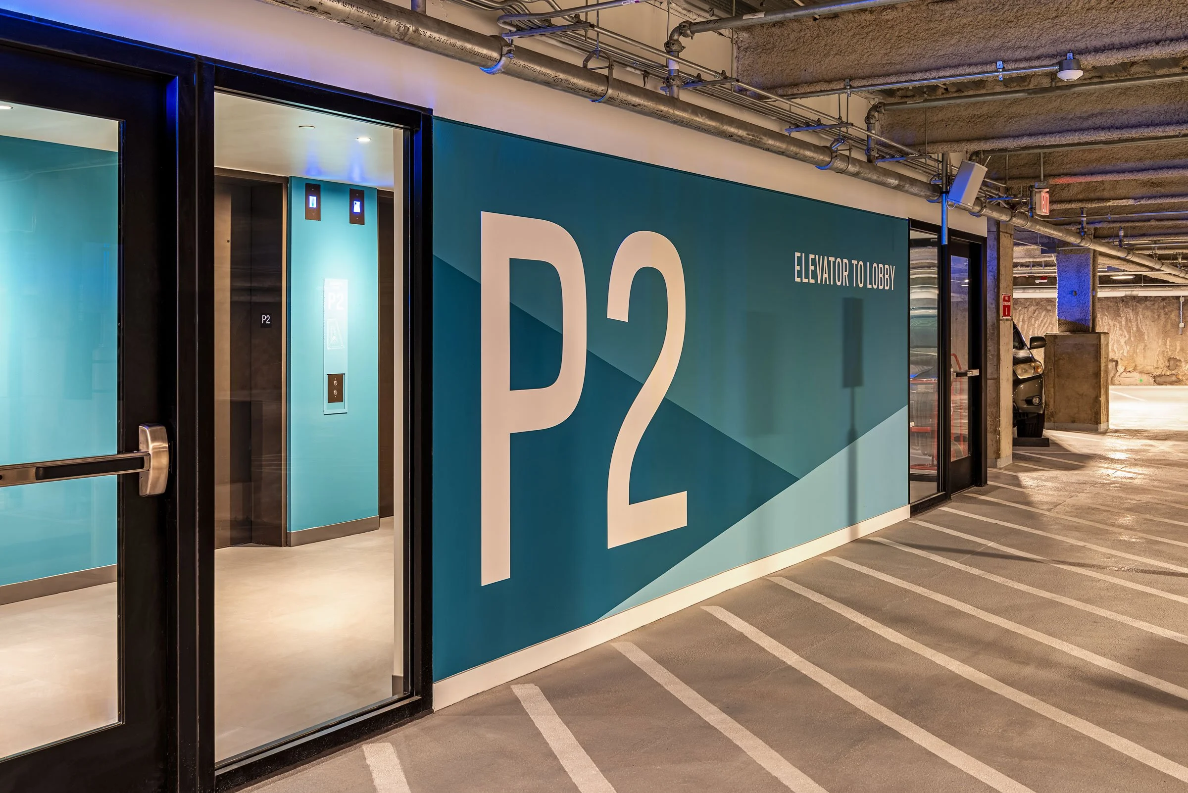 Scope Exterior and interior identity, tenant signage, room, code and wayfinding signage, garage signage